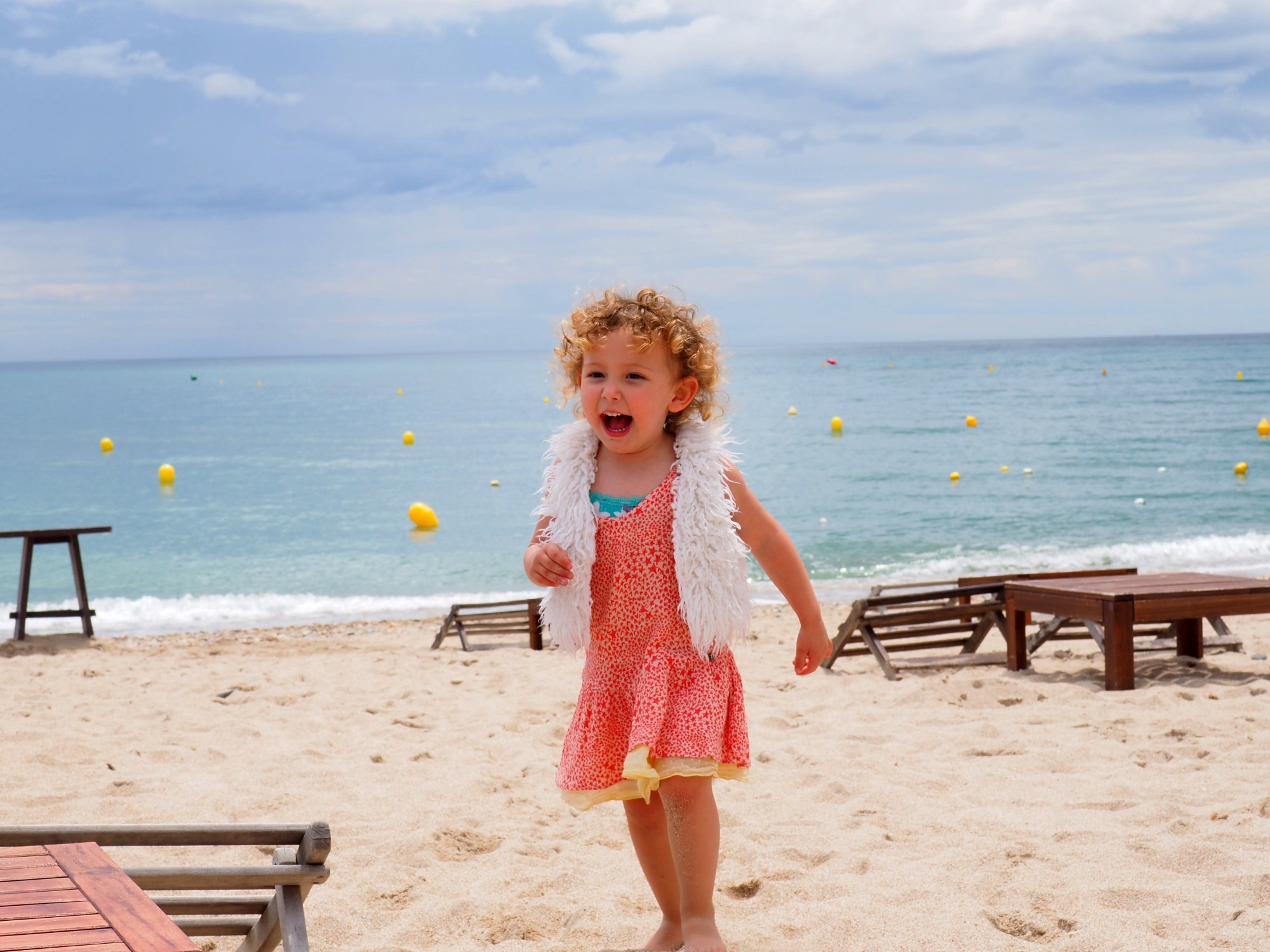 Le temps n’était pas trop en notre faveur, mais en fin d’après midi on a pu profiter de la plage! Violette a trempé les pieds dans l’eau glacial et a couru tout ce qu’elle a pu sur le sable!