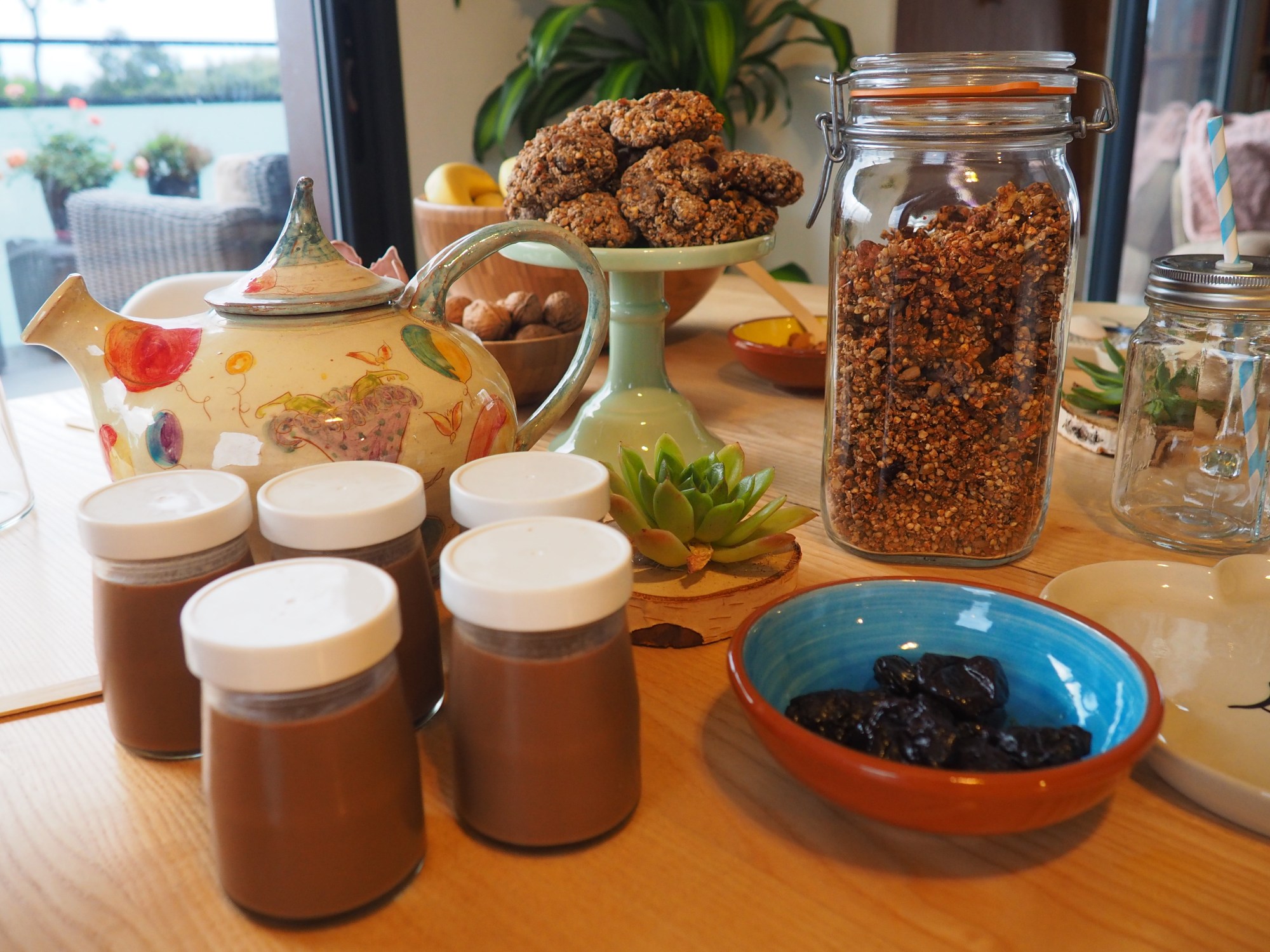 Ce week-end, on était en mode cocooning, on est resté à la maison et on a pris le temps de se reposer et de faire les choses doucement. J’en ai profité pour préparer un petit-déjeuner healthy qui change des tartines du matin. J’ai réalisé des biscuits aux céréales, des granolas maisons et des yaourt au chocolat sans lactose! Les enfants étaient ravis de cette petite surprise du matin, et l’amoureux nous a préparé un vrai jus de fruit à base de betteraves et poires.