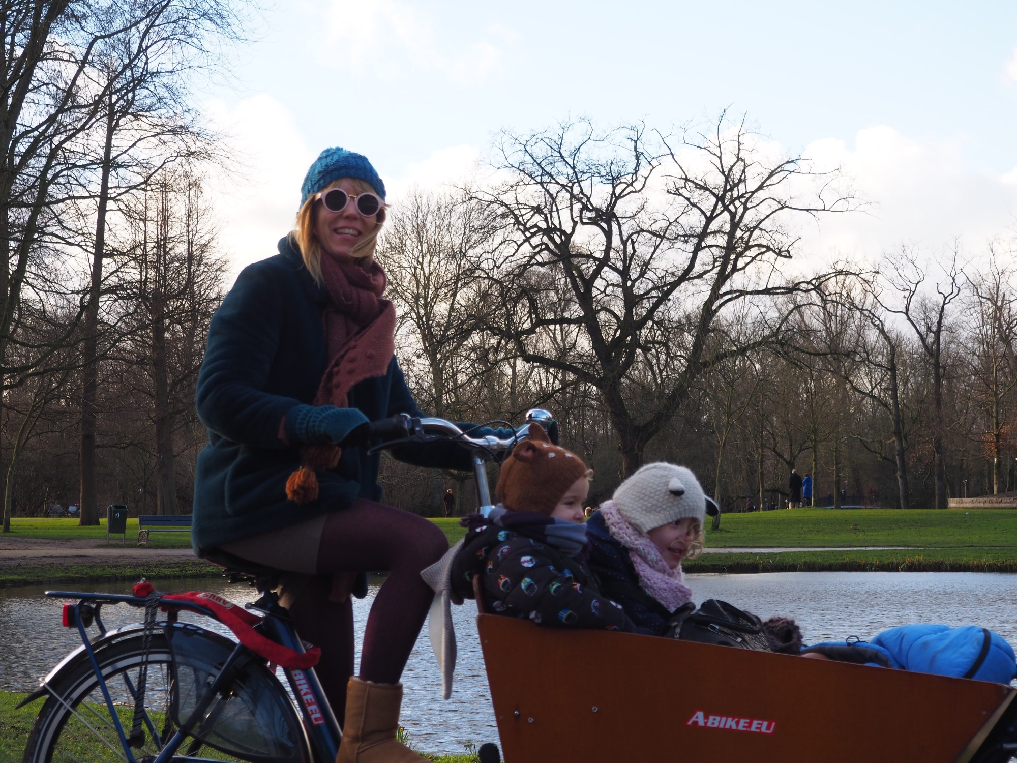 Nous avons loué nos vélos à A-bike.eu, ils ont des vélos bakfiets qu’ils louent à la journée et qui sont parfaits avec deux enfants. Le vélo est une bonne option pour se réchauffer et ne pas souffrir du froid à cette période. Le magasin se trouve au coeur du centre ville et il est très facile de s’y rendre.