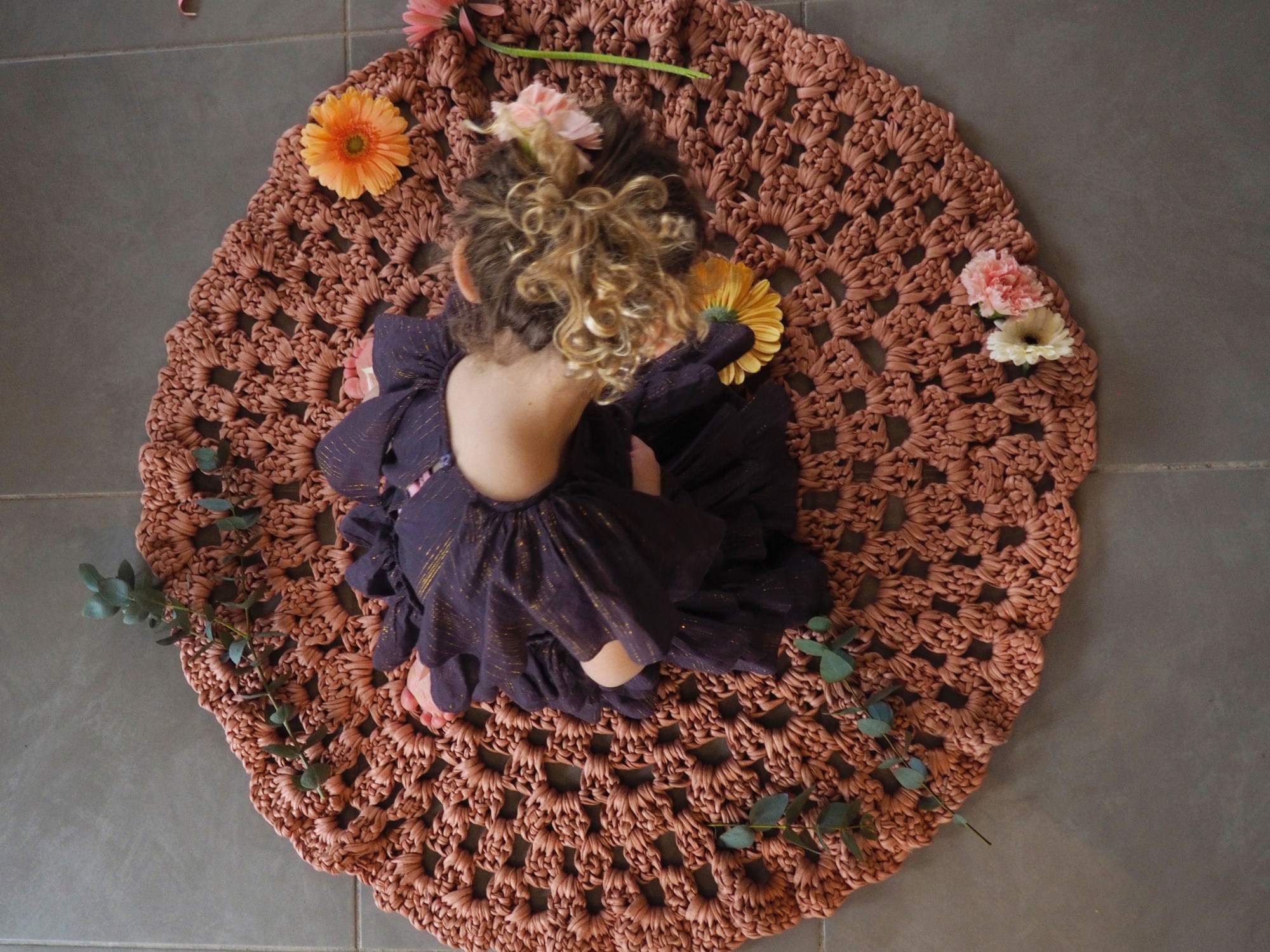Cette semaine, je vous livre un tuto pour réaliser un tapis au crochet. Je cherchais de jolis tapis crochetés depuis longtemps pour la chambre de Violette, mais j’ai finalement décidé d’en réaliser un moi-même. C’est une option beaucoup plus économique et on a par la suite, cette agréable sensation du fait soi-même. Cela a été tellement facile et rapide que j’en ai alors fait un autre pour notre salon. Pour élaborer ces tapis, j’ai utilisé un fil trapilho et un gros crochet, la grosseur du fil et du crochet permettent d’avancer vite et de faire le tapis en quelques soirées.