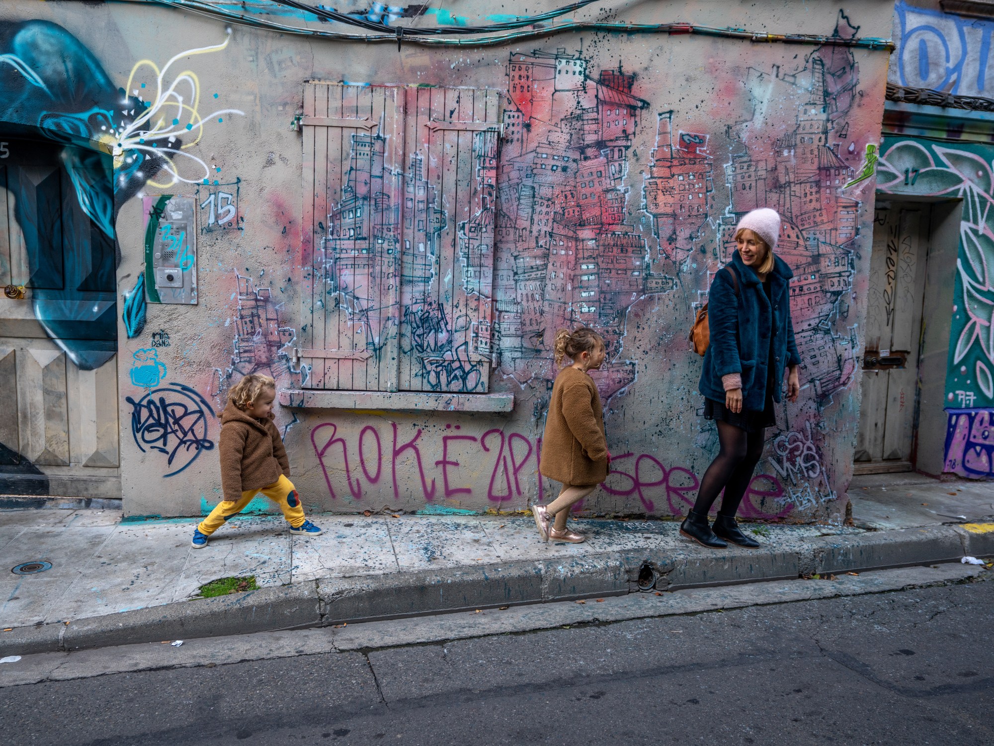 Nous avons parcouru les rues de Toulouse à la recherche du Minotaure, nous sommes passés par le jolie quartier des Carmes, par le jardin des plantes, nous avons sillonné toutes les ruelles du centre ville et flâner le long des quais. Il y’a eu beaucoup de tours de manège ( le manège étant juste en face de notre hôtel), un Minotaure qui s’est appelé tour à tour robot, dinosaure ou monstre, il y a eu des siestes à deux sur une poussette et des photos face aux graffitis de la rue Gramat! Une petite rue de Toulouse complément envahie par les graffitis et où la population s’est appropriée le mur. On a déconnecté l’espace de quatre jours, à deux heures de chez nous avant de rentrer reprendre le rythme!